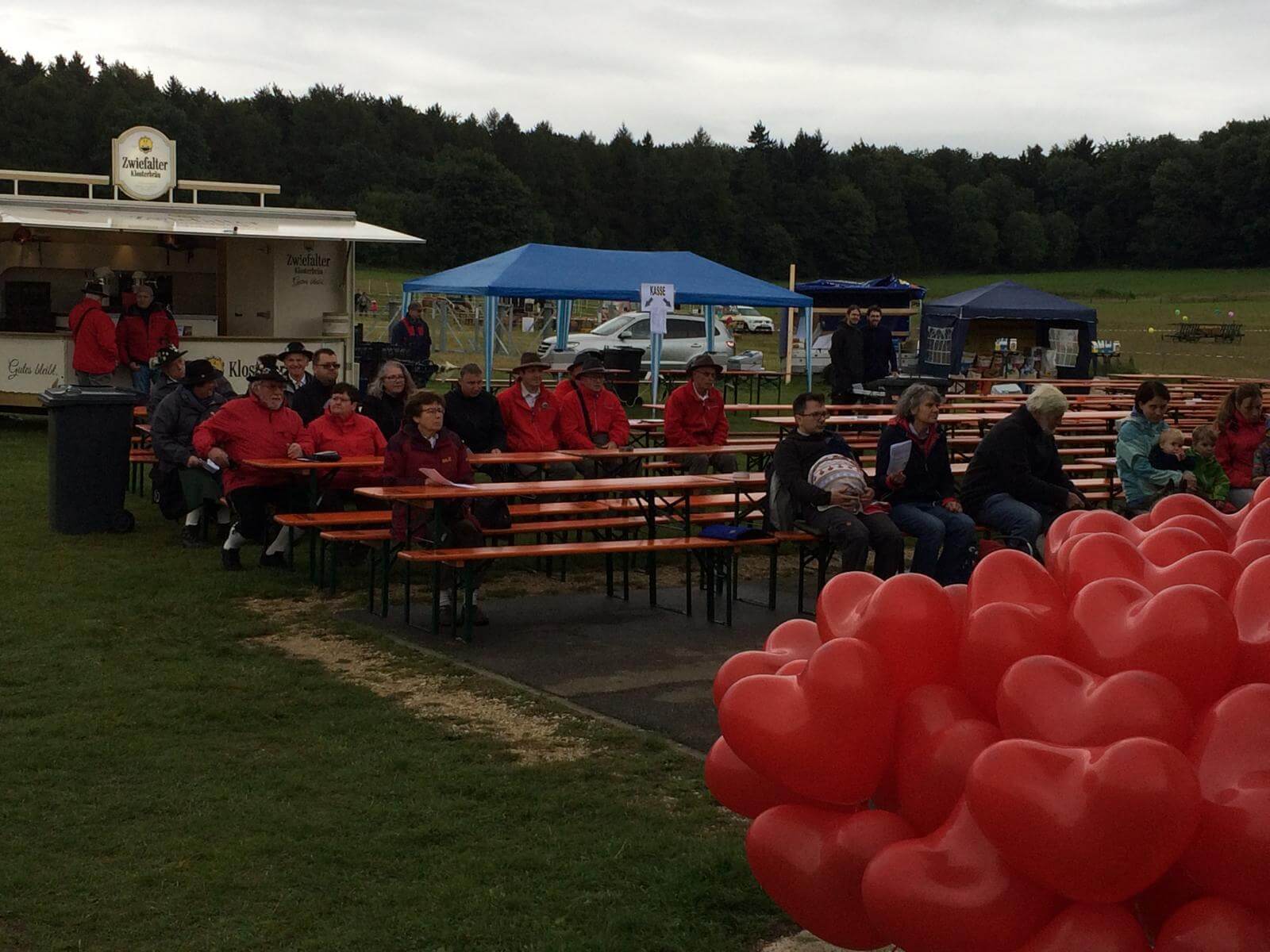 Bei trübem und kaltem Wetter fand um 10 Uhr ein ökumenischer Open-Air-Gottesdienst unter Mitwirkung von Alphornbläsern statt.